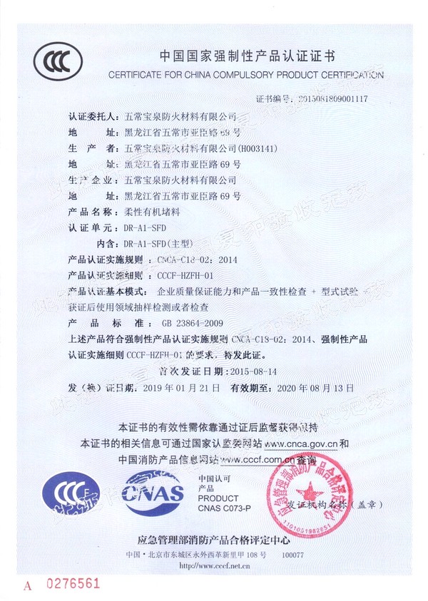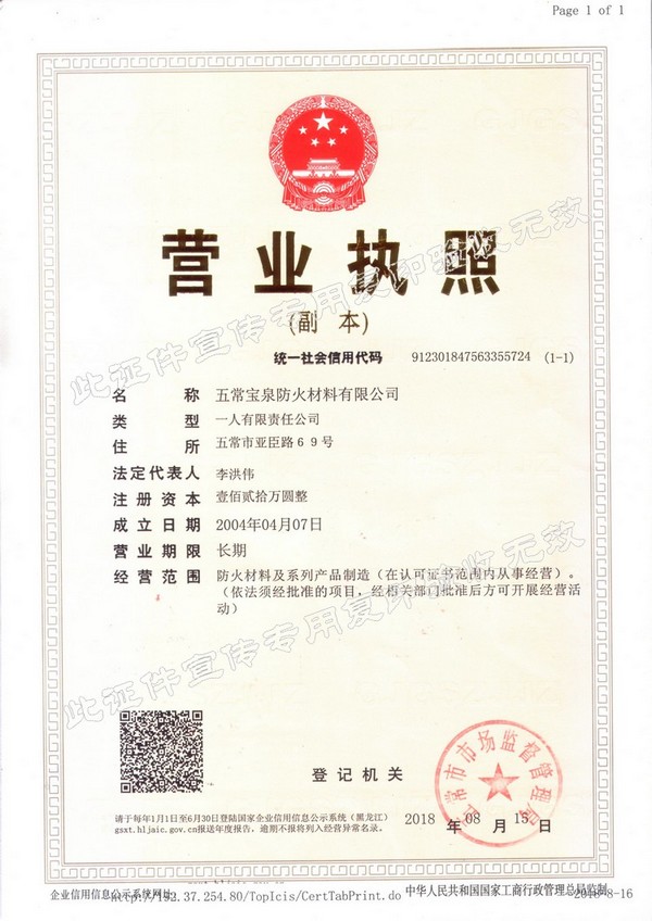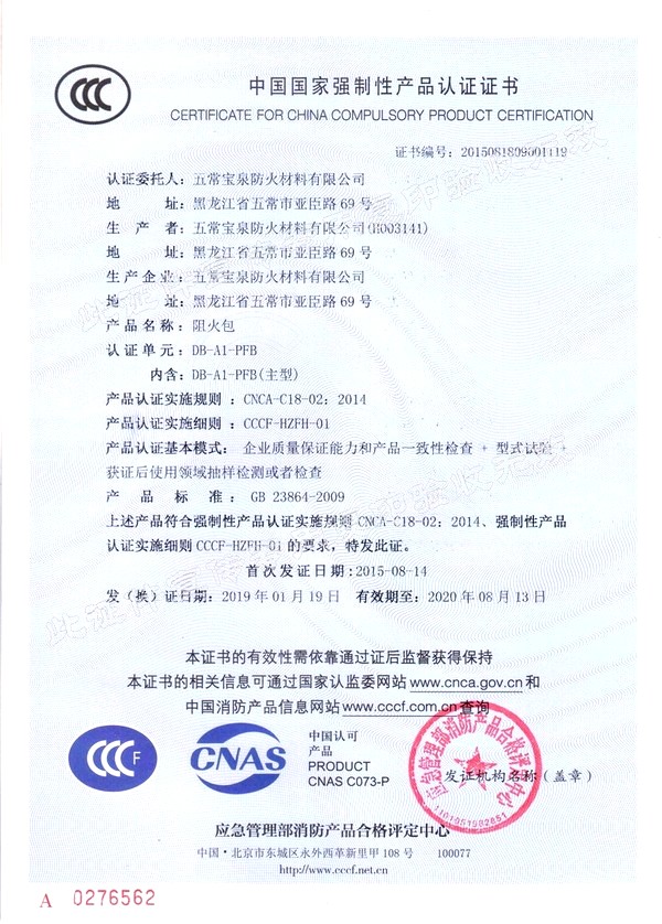 企業(yè)簡(jiǎn)介 五常寶泉防火材料有限公司(黑龍江省寶泉消防設(shè)備有限公司)是主要制造、經(jīng)營、銷售防火阻燃材料系列產(chǎn)品。其中以自粘性阻燃包帶(ZFBD)、阻火包(PFB)、有機(jī)防火堵料(SFD)、室內(nèi)超薄型鋼結(jié)構(gòu)防火涂料(NCB(BCF)-1)為主要產(chǎn)品。寶泉牌防火材料系列產(chǎn)品是普通防火材料的更新?lián)Q代產(chǎn)品,防火性能優(yōu)異,具有普通防火材料沒有的諸多優(yōu)點(diǎn):施工方便、經(jīng)久耐用、耐火極限高、熱傳導(dǎo)率低、耐腐蝕、抗老化、無毒無害、環(huán)保、可以連續(xù)施工等特點(diǎn)。產(chǎn)品廣泛應(yīng)用于電力企業(yè)(各型電廠、輸變電公司、電建公司、電力公司)、石油化工企業(yè)、冶金業(yè)、通訊業(yè)、地鐵、隧道、...